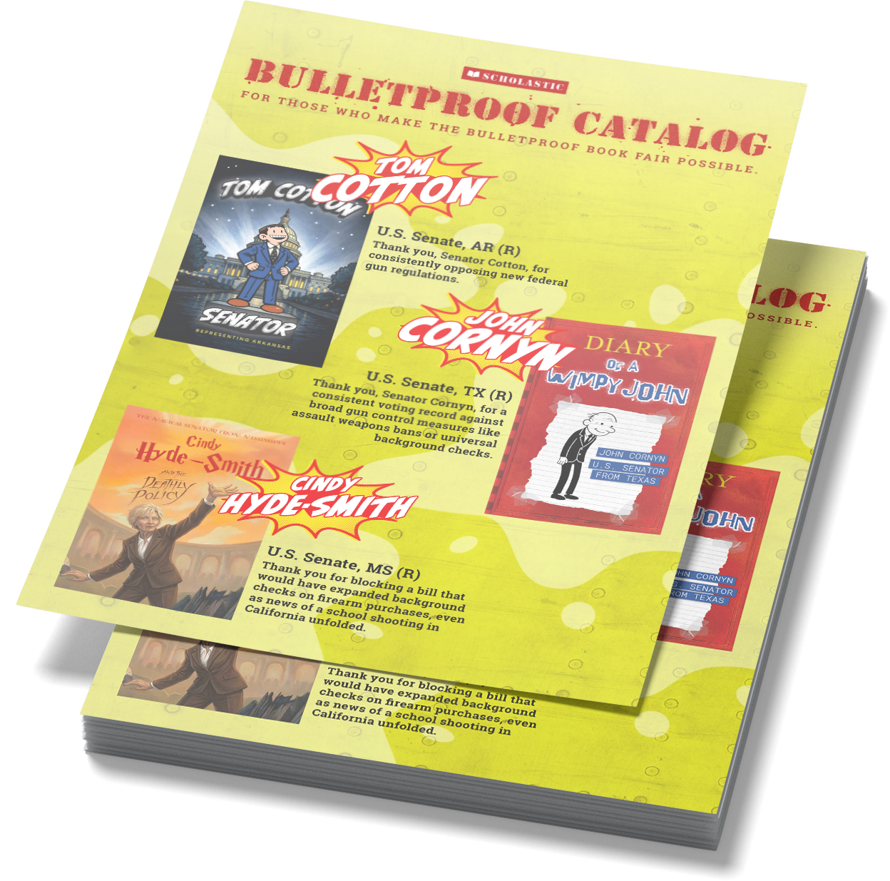 To thank those running for office who make the Bulletproof Book Fair possible, the iconic Scholastic Book Fair Catalog has been transformed into a Bulletproof Book Fair Candidate Catalog.